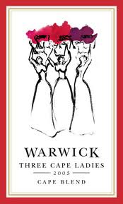 Vino Numero 4.-Three Cape Ladies 2004.-Region Stellenbosch-Bodega Warwick.Precio $20.Tenor Alcohólico 14.5% . Este vino es una mezcla de Cabernet Sauvignon 33%, Merlot 21%, Pinotage 21% y Shirah 13%. Este vino tuvo una evaluación media de 89.7 puntos con una concentración entre 90 y 92 puntos y un promedio de 90.8 puntos. Wine Spectator califico este vino con 90 puntos. Como se ve tanto el promedio general como el promedio de la concentración difirieron levemente de esta calificación.