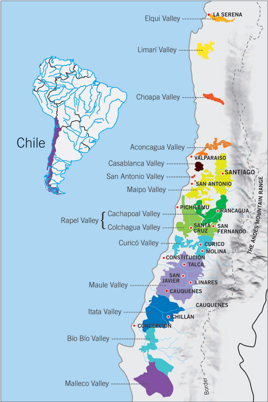 Clima: El Clima es muy similar al de las otras regiones del valle central en donde los veranos cálidos acompañados de las noches frescas influenciadas por las brisas frías del Pacífico producen las condiciones ideales para la maduración de la uva sin perder su acidez, lo que produce vinos de gran balance y versatilidad.