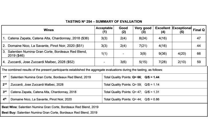 Tasting No 254 – June 27, 2023 – Valle de Uco, Argentina