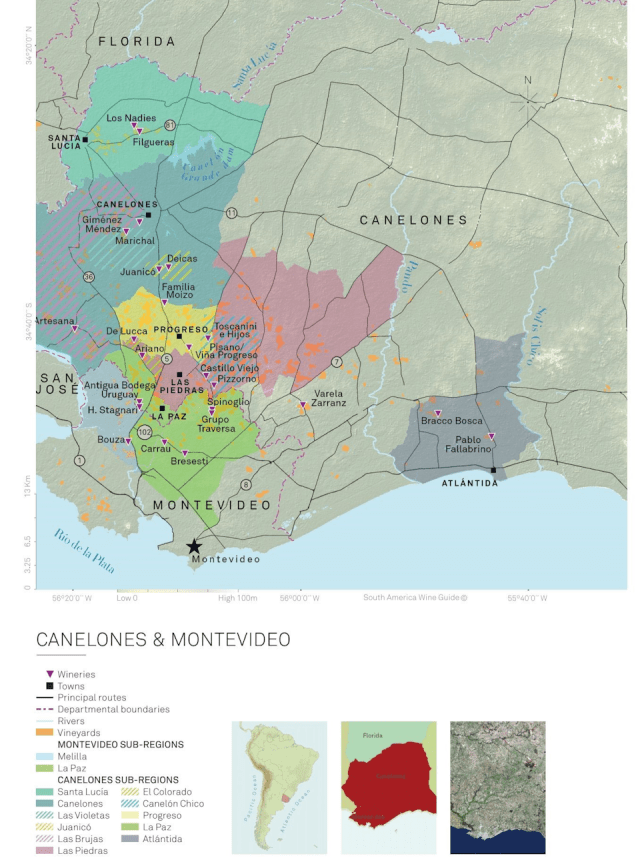 Uruguay: The Little Wine Country that Could. March 11,2022/updated June 2023. https://worldoffinewine.com/news-features/uruguay-the-little-wine-country-that-could#:~:text=Uruguay%27s%20wine%20regions-,Canelones,most%20populous%20city%20of%20Uruguay.